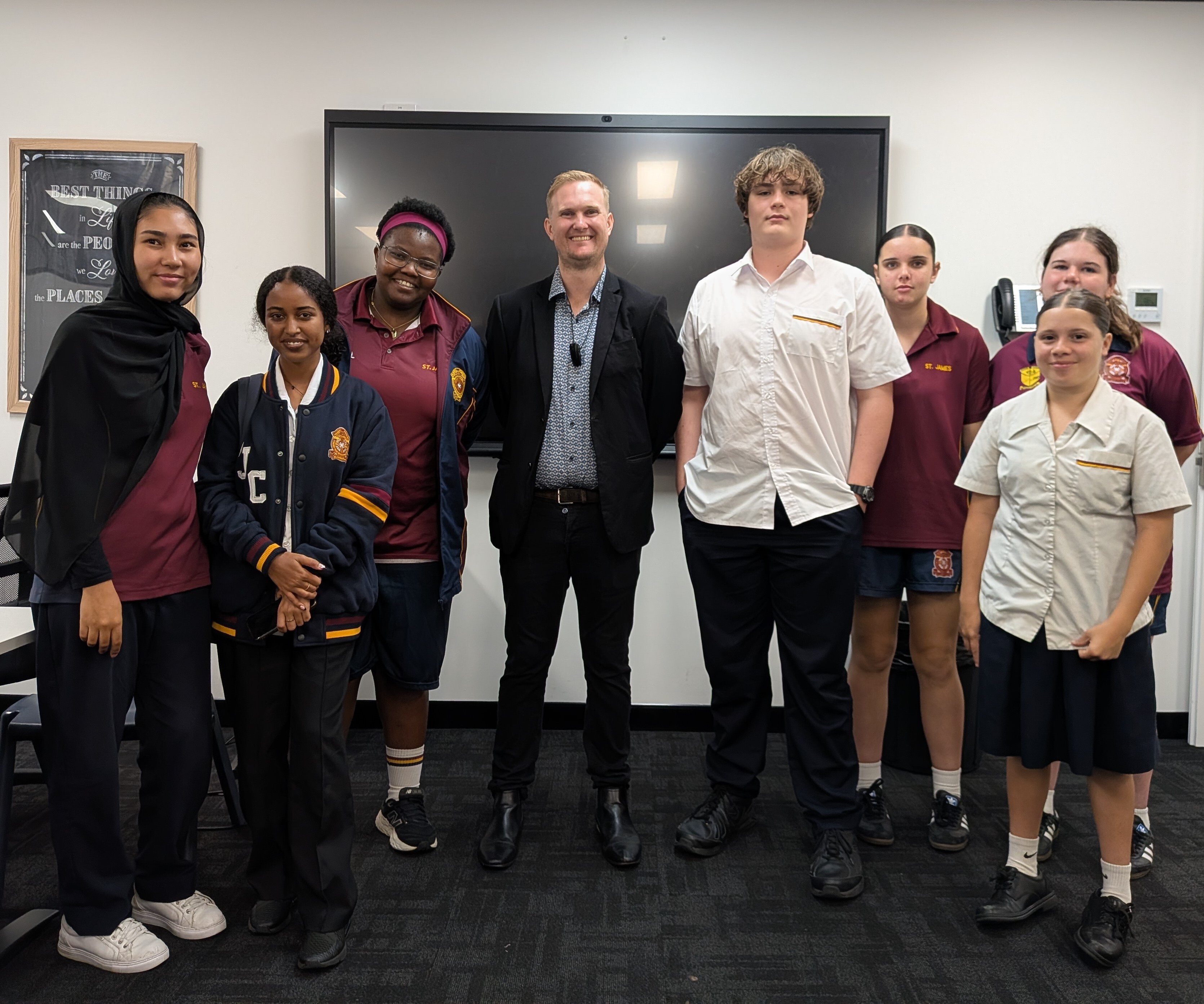 Seven students recently attended an information session with Chris Cox from Axiom College, exploring pathways into childcare. Students learned about daily tasks, pay scales, and opportunities for progression in the industry. This is our first year partnering with Axiom College, following their acceptance of Year 11 students Winter-Fae and Lexi as school-based trainees. We hope attendees consider applying. Families interested in school-based traineeships for Years 10–12 can contact Tony at tninasivinche@stjamescollege.qld.edu.au for more information.