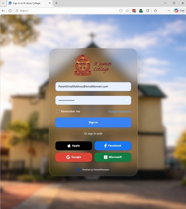 This new account login will also allow parents to login using one of the following identity providers: Google, Microsoft, Apple and Facebook, provided the email registered with the provider matches with the email you have previously provided to the College.