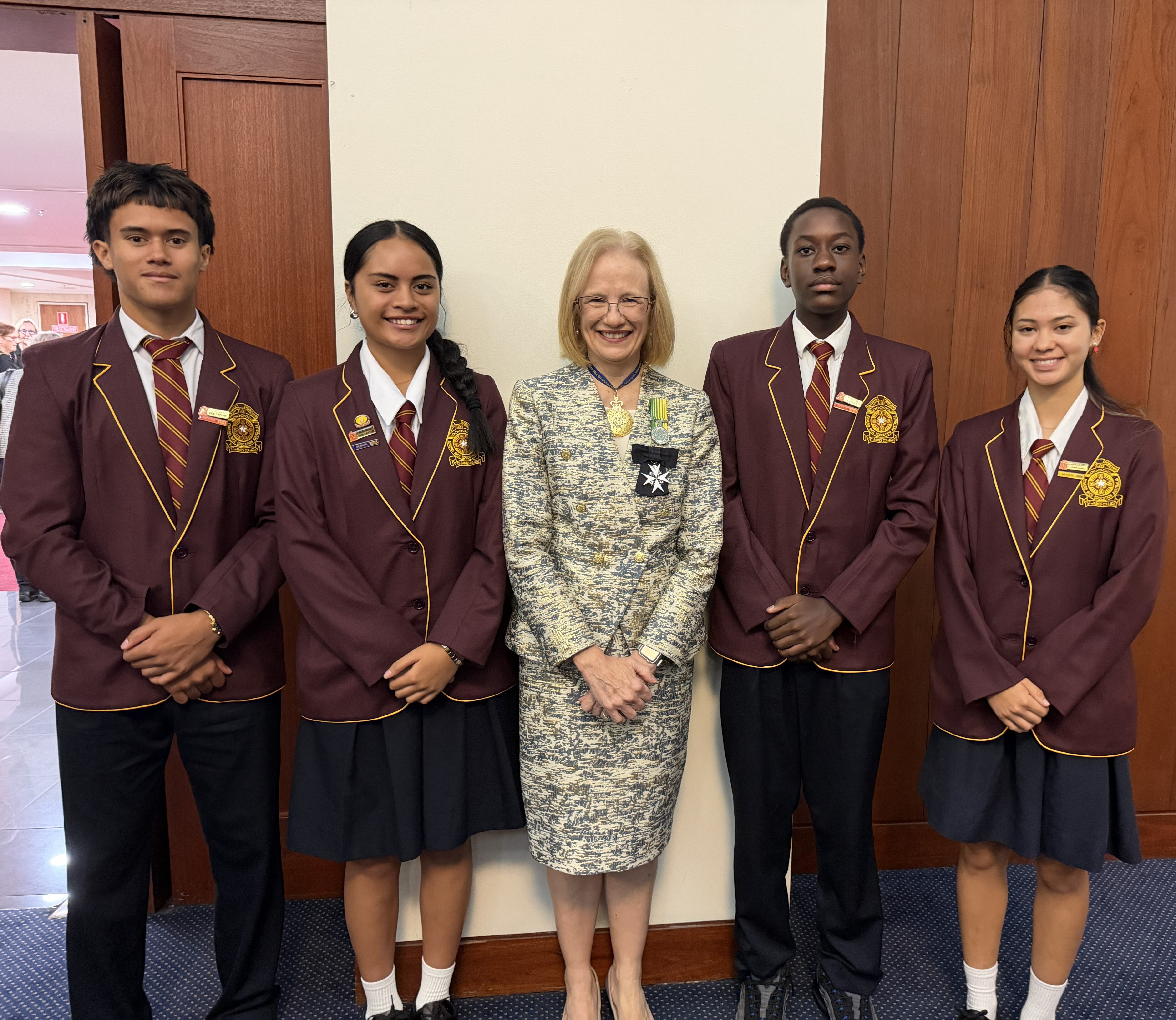 Our College Captains, Emma Corbett, Esther Silao, Khalid Ali Idrisa and Quade Franciscus were invited to give a reflection on the meaning of being a Commonwealth country at Parliament House in front of the Governor of Qld, The Honourable Jeannette Young. They spoke beautifully and proudly and were a credit to St James College.