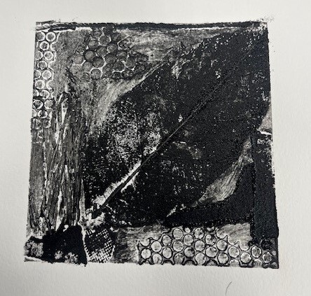 The images included show a selection of the students’ developing collograph plates and prints. Their work highlights the variety of textures and creative approaches possible within this printmaking process.